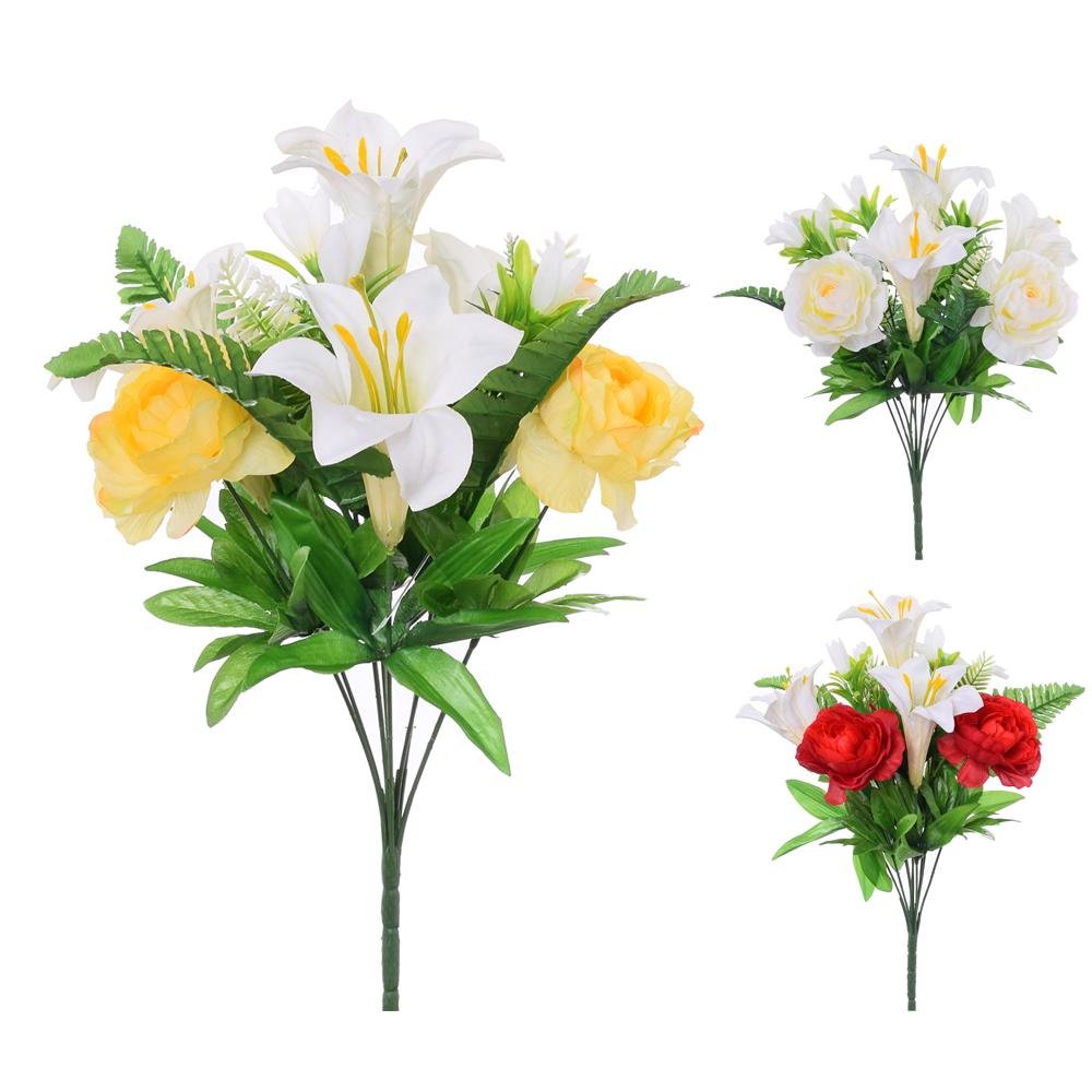 Dekorace Kytica ľalia ruža x10 3f 41cm