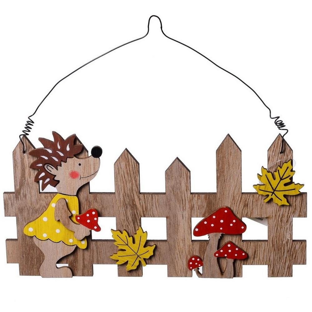 Dekorace Drevený záves na plot jeseň+jež+huby 22,3x11,5x0,7cm