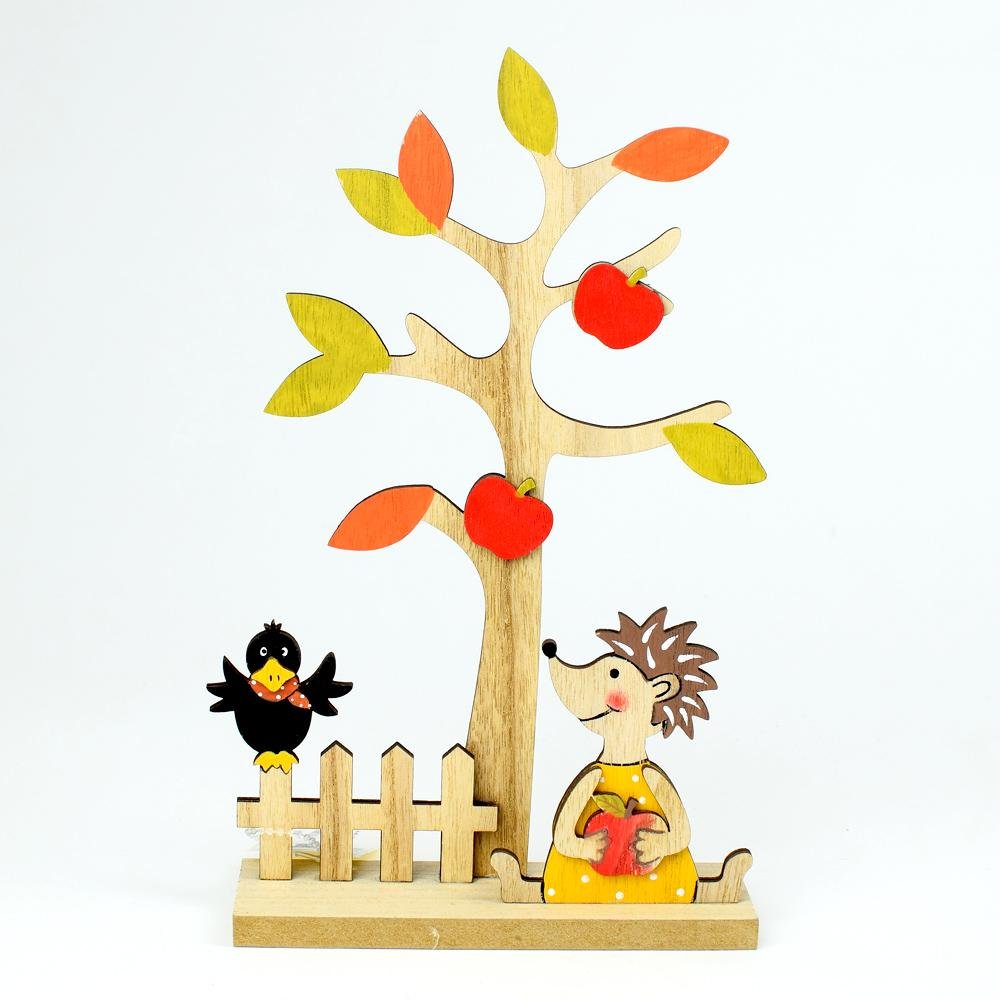 Dekorace Strom s ježkom drevo 14,5x24,7x5cm