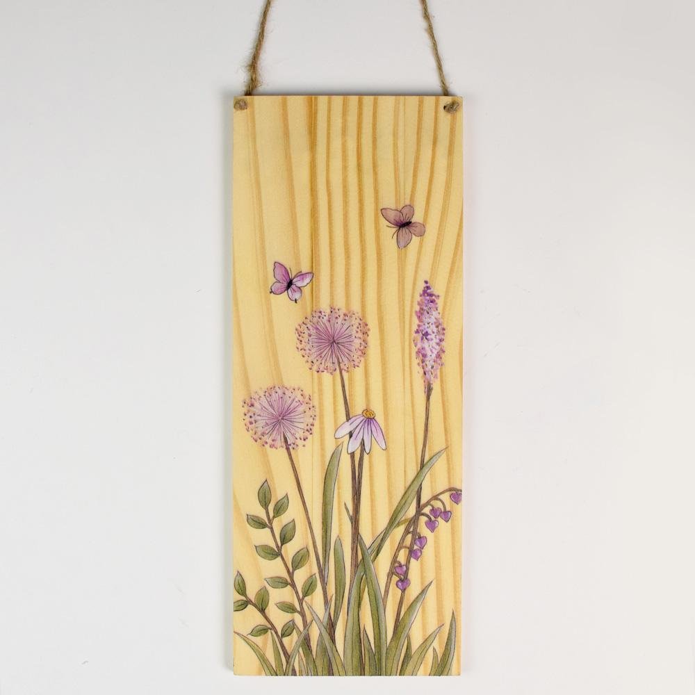 Záves tabuľka kvety drevo 30x12x1cm natur