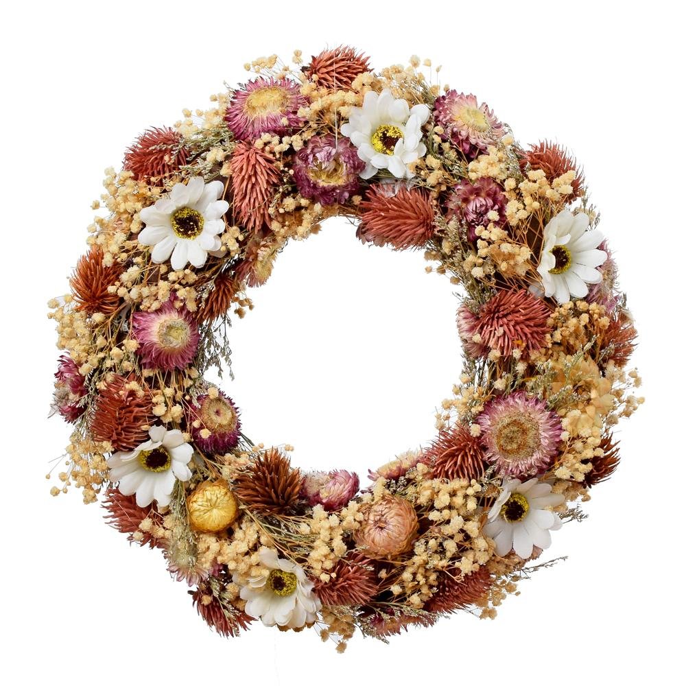 Dekorace Veniec prírodný slamienky krém/ ruž. 32cm