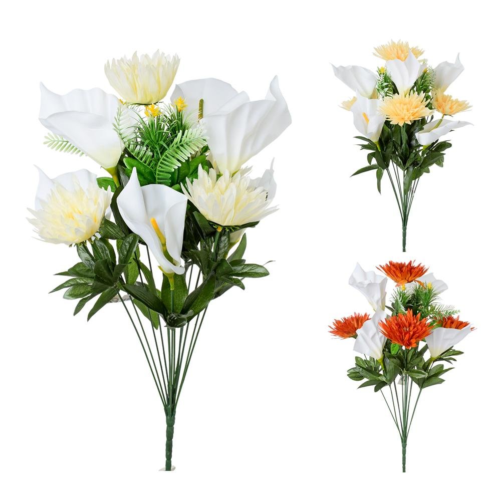 Dekorace Kytica kala, chryzantéma 3f 53cm