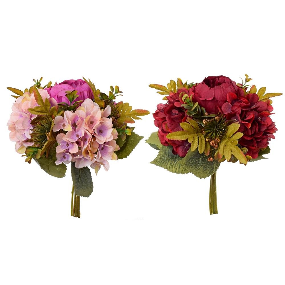 Kytica pivonka, hydrangea, bodliak, zeleň mix 2f 35cm