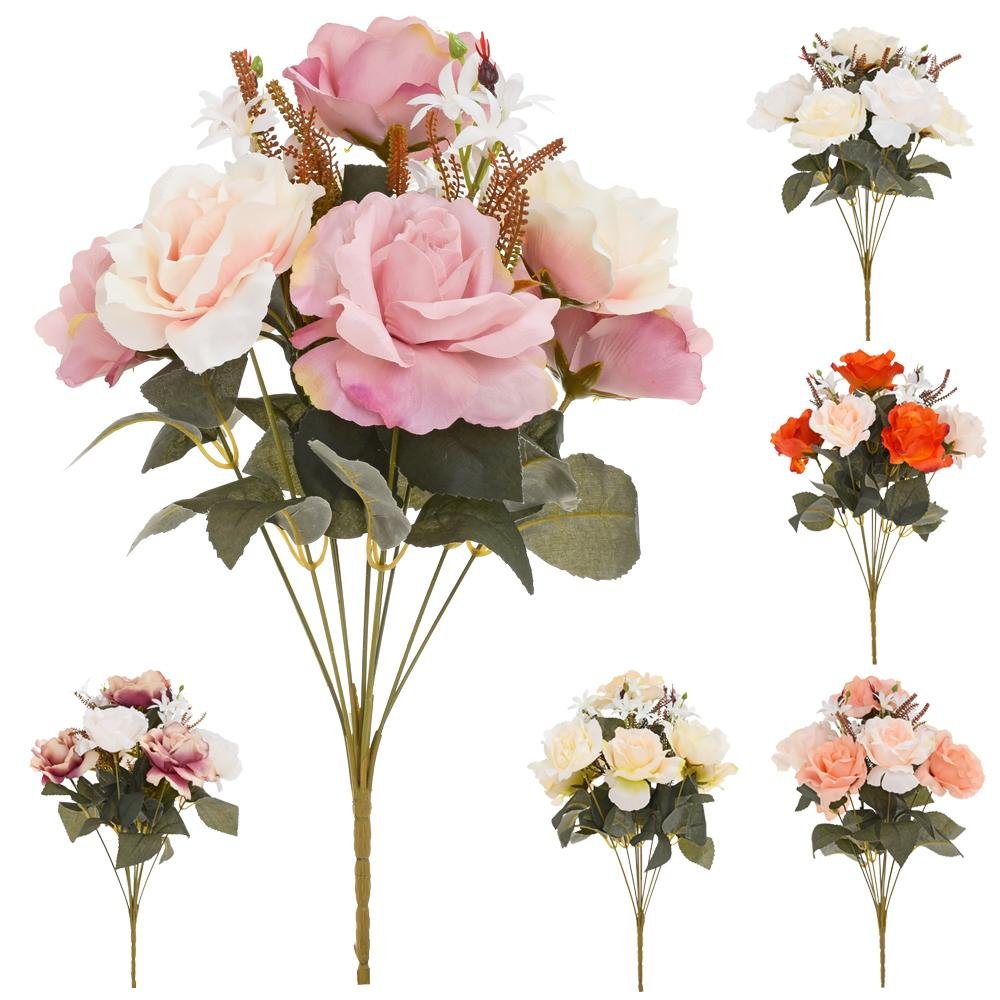 Dekorace Kytica ruža, drob. kvety, zeleň 6f