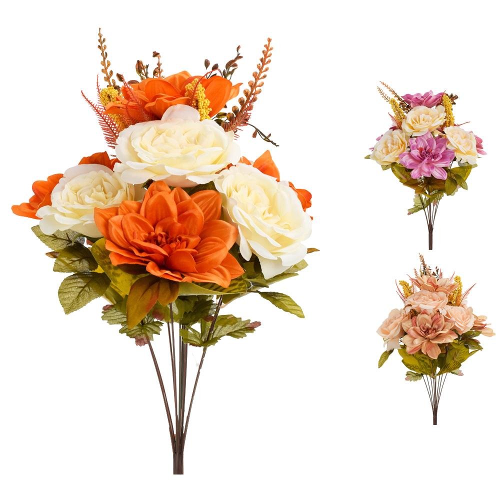 Dekorace Kytica ruža dahlia 56cm mix 3f vzorkovňa
