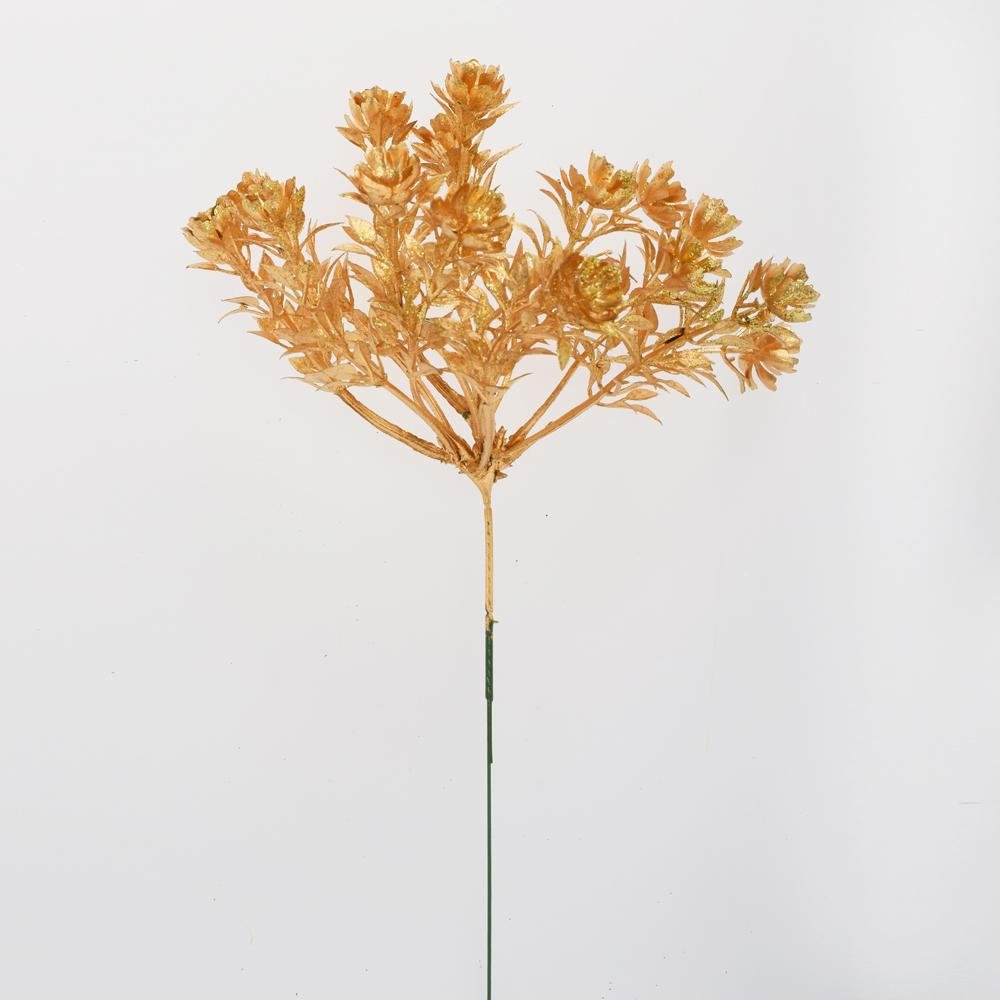 Dekorace Zápich kvietky drobné zlaté 24cm