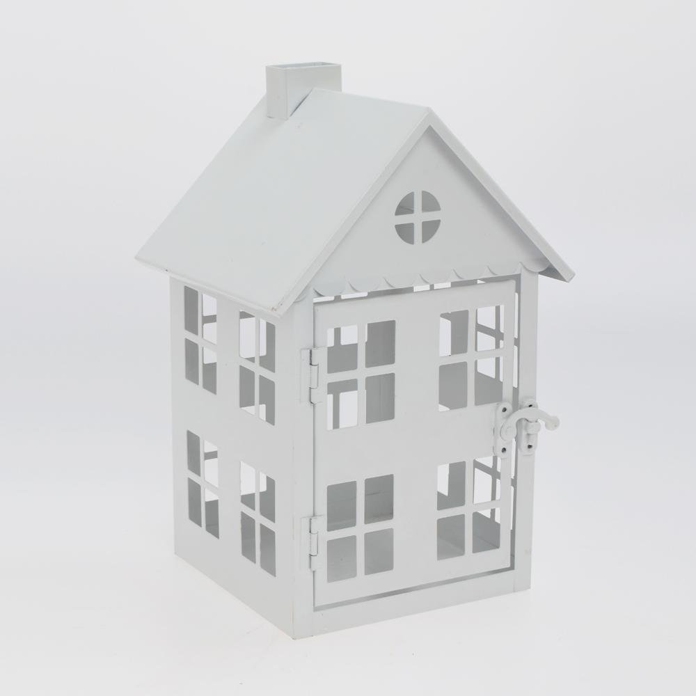 Dekorace Lampáš domček biely kov 15*16*25cm