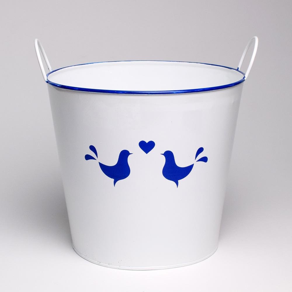 Obal vedro s ušami veľké kov modrotlač vtáky v:19x21cm super cena