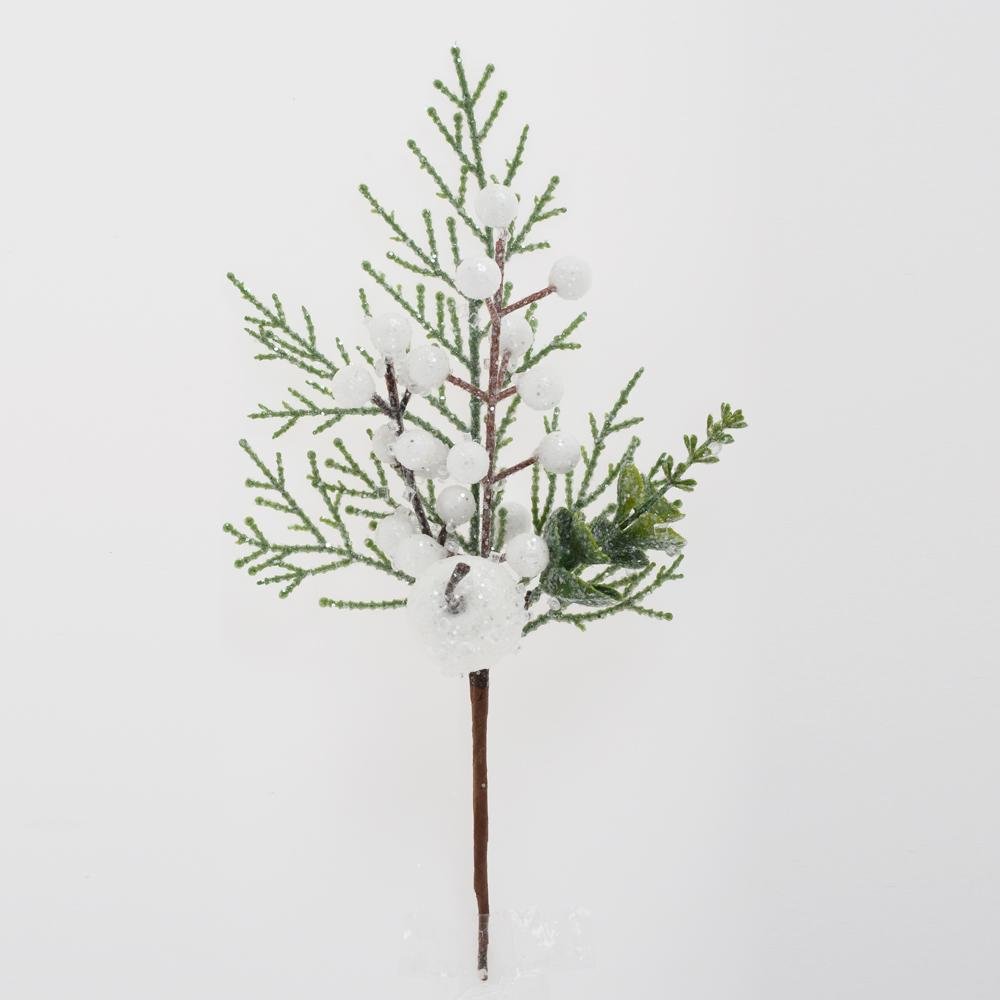Dekorace Zápic tuja, eucal., bie. jablko, bobule, ľad 27cm