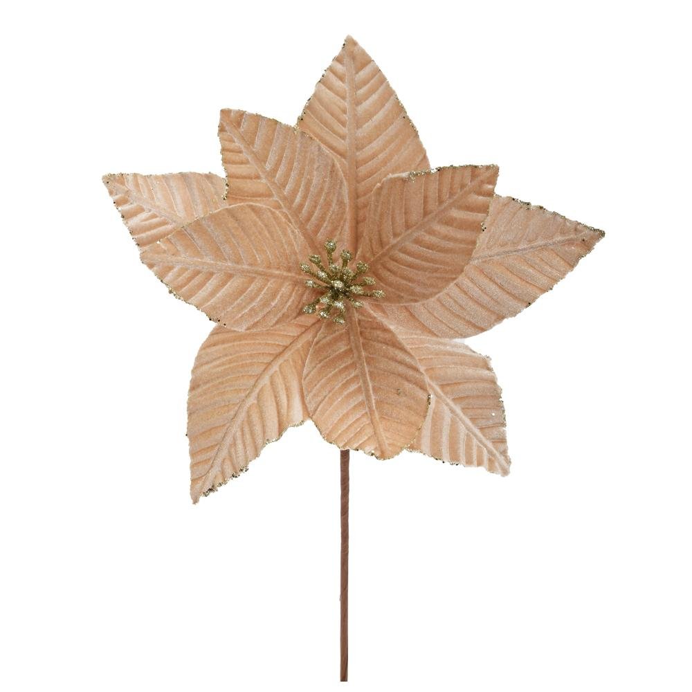 Dekorace Zápich vianočná ruža šampaň zamat 37cm