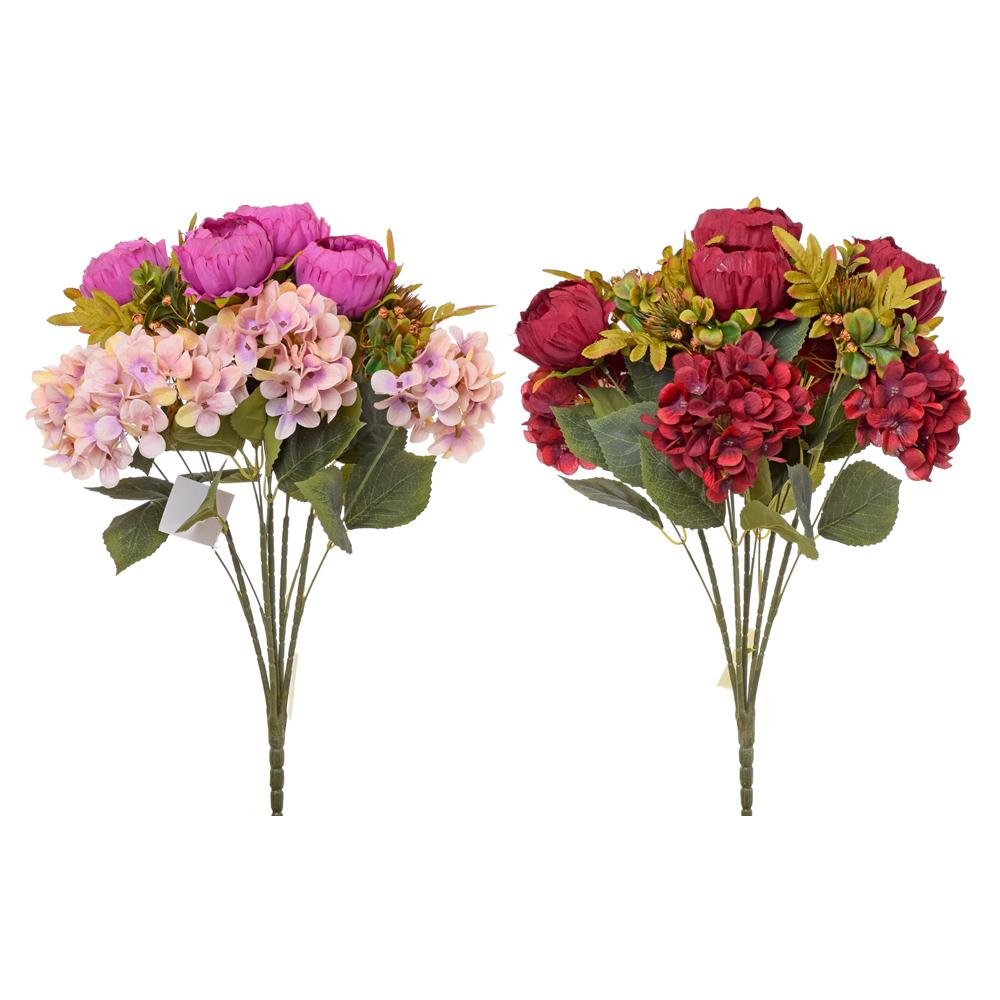 Kytica pivonka, hydrangea, bodliak, zeleň mix/2f 60cm