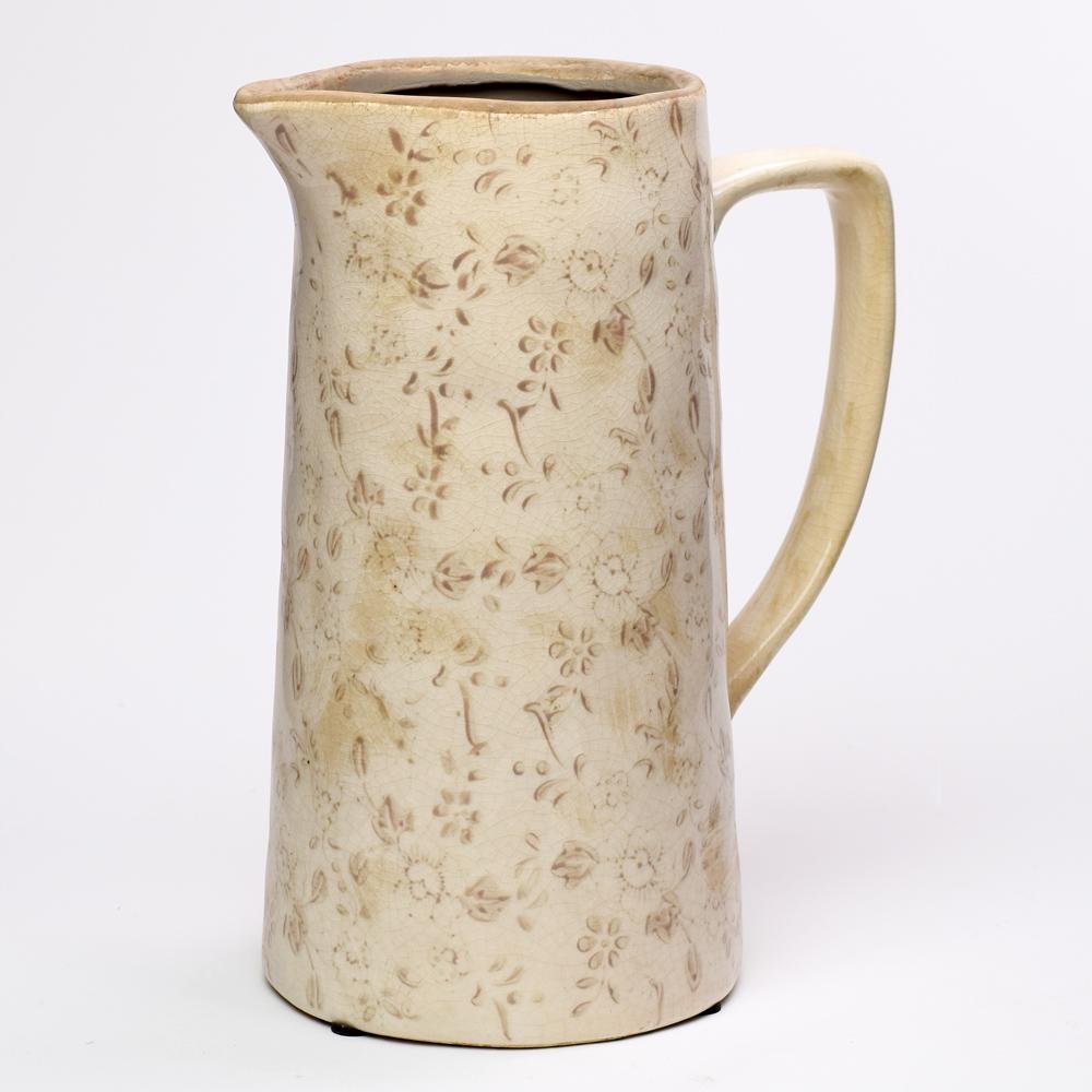 Dekorace Džbán keramika vzor kvety hnedé 20,5x13,5x25,5cm super cena