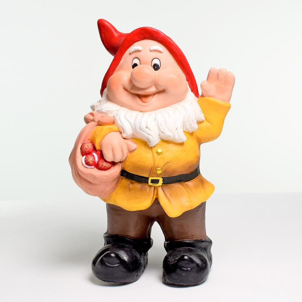 Dekorace Trpaslík s košom mgo žltý 24x16x37cm