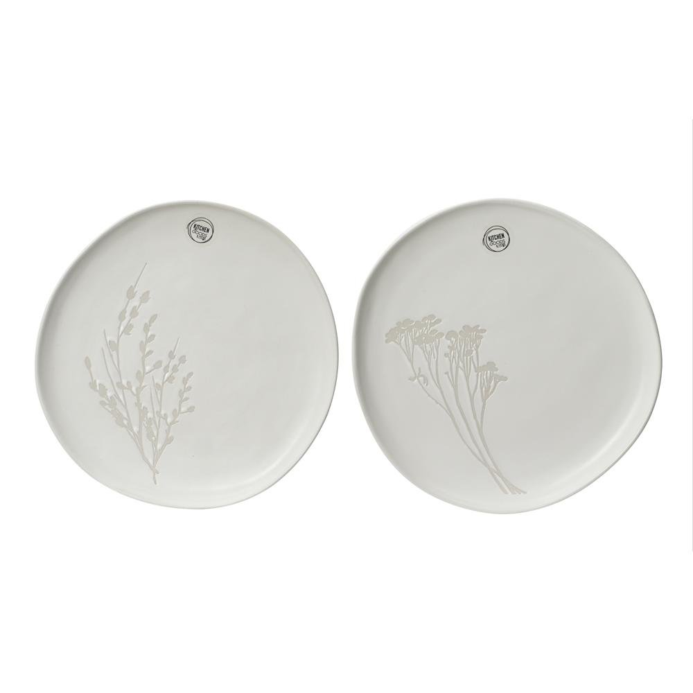 Dekorace Tanier kamenina v2,2/27cm matná glazúra list a kvet vzor 2ass