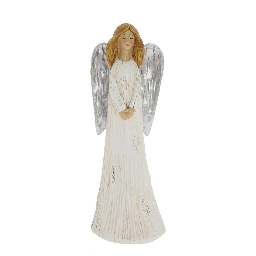 Anjel bielo-strieborný poly 8,5*6*24,5cm