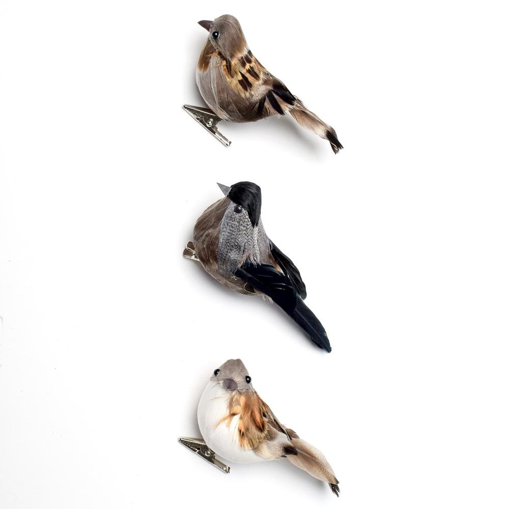 Dekorace Vtáčik na štipci čier/siv/hne, bie/hne, hne mix3 perie 9*3,5*6cm