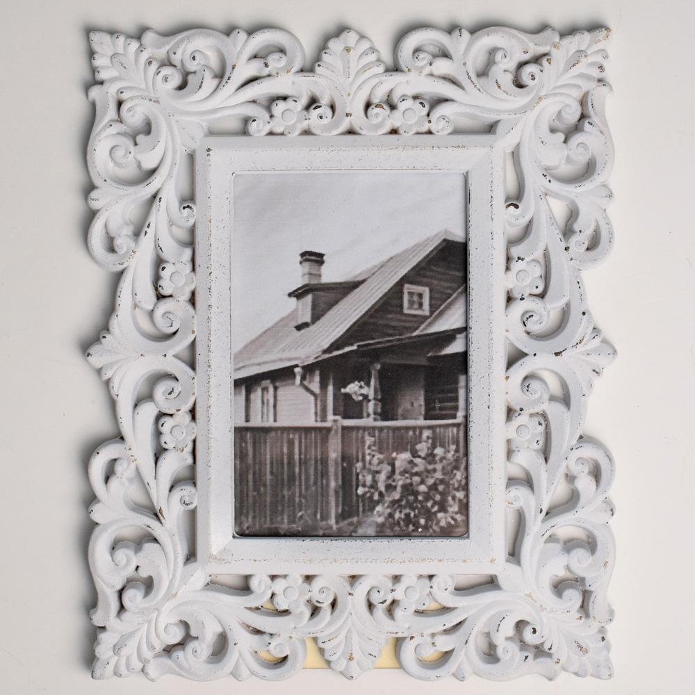 Dekorace Fotorámik ornament drevo 25,5x1x20,5cm biely