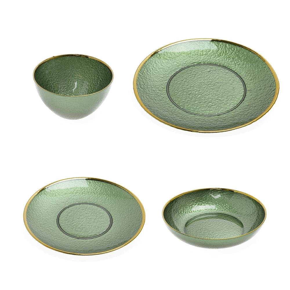 Dekorace Taniere + misy set sklo zelený s/24