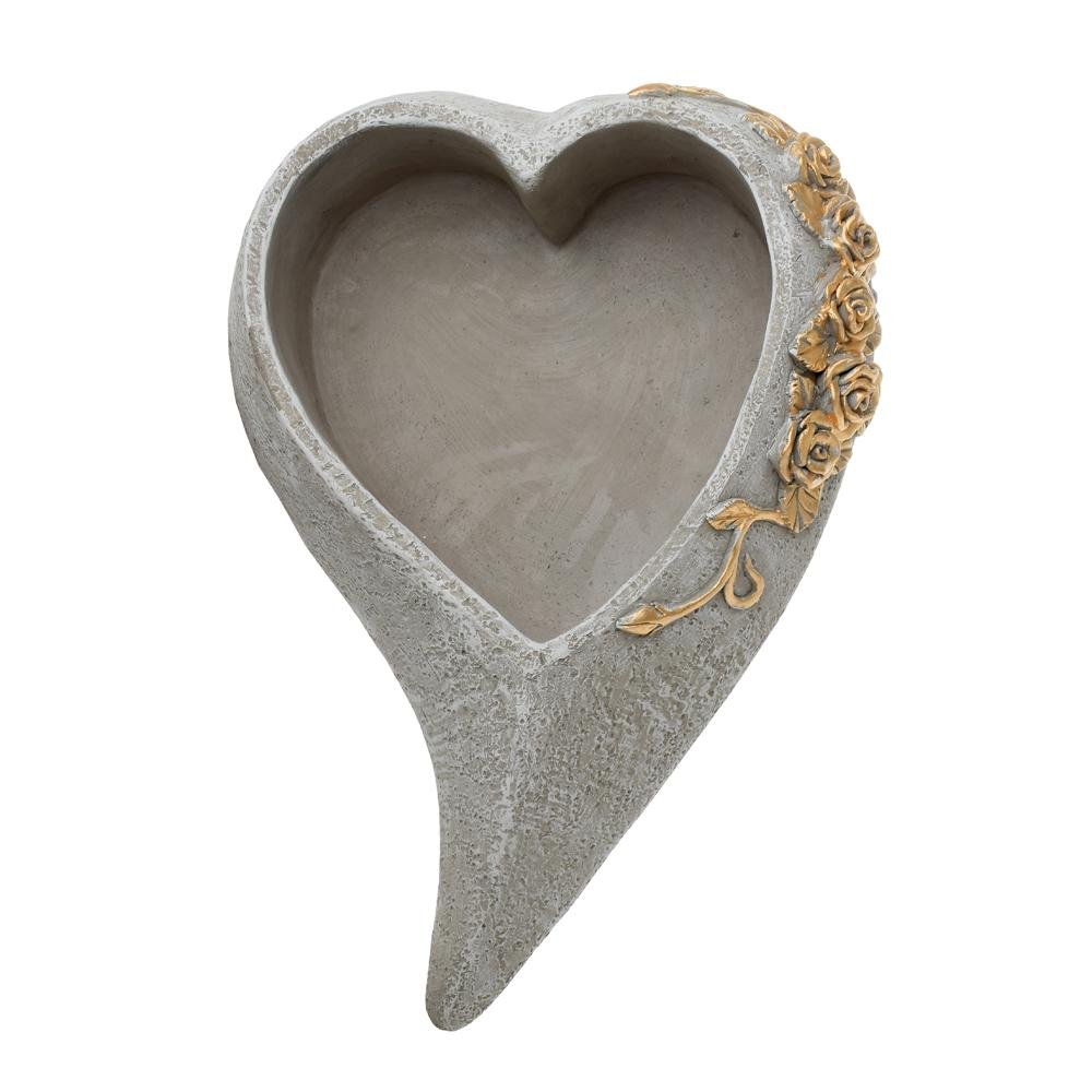 Dekorace Obal srdce cement sivo zlatá ruža 50x35x13cm