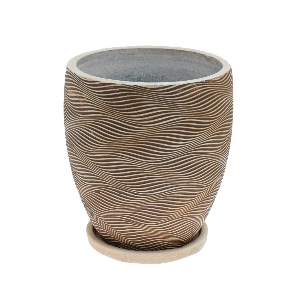 Dekorace J126 kvetináč + miska kiki béžovo hnedá  34x34cm m