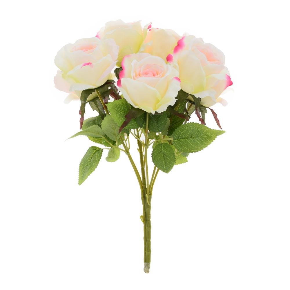 Dekorace Kytica ruža x7 40cm krém/ruž