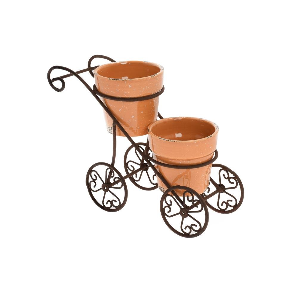 Dekorace Kočiar hrdza / 2 črepníky 20x7x15 cm