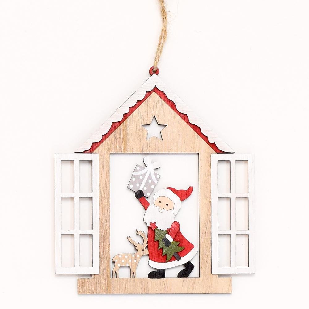 Dekorace Záves okno santa drevo 13,5x0,8x15,5cm
