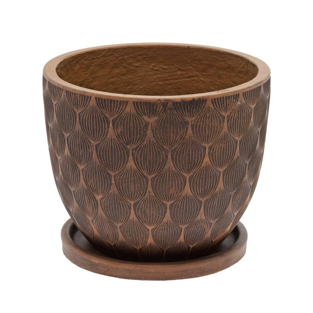 Dekorace J63 kvetináč + miska okrúhly jill hnedá 24h19,6cm s