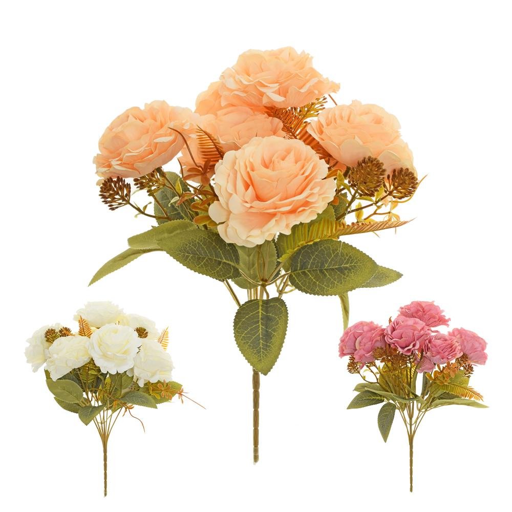 Dekorace Kytica ruža, zeleň mix/3f 35cm