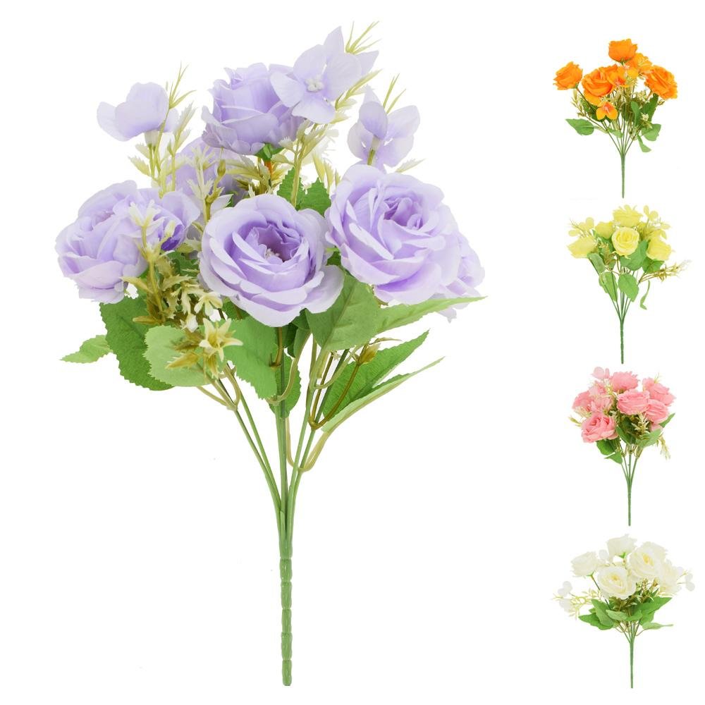 Dekorace Kytica ruža, drob.kvety, zeleň ,mix/5f 31cm