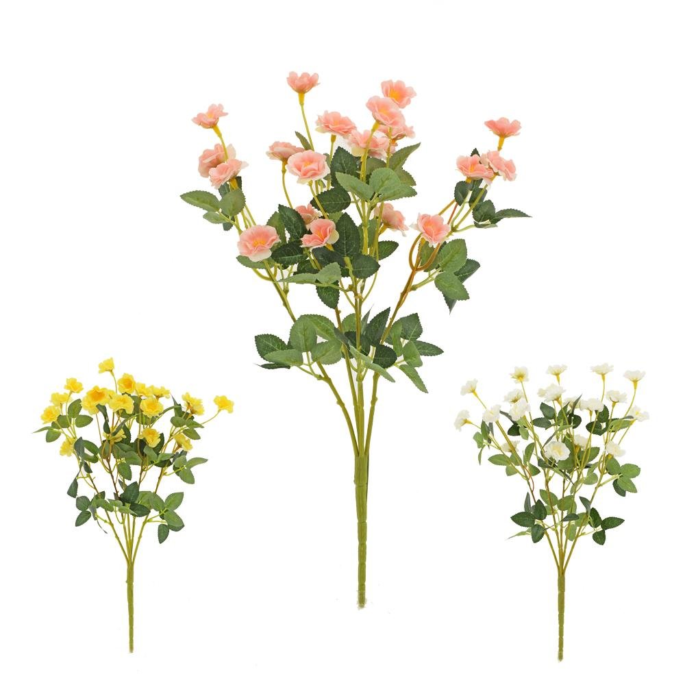 Dekorace Kytica drob. kvety, zeleň,mix/3f 37cm