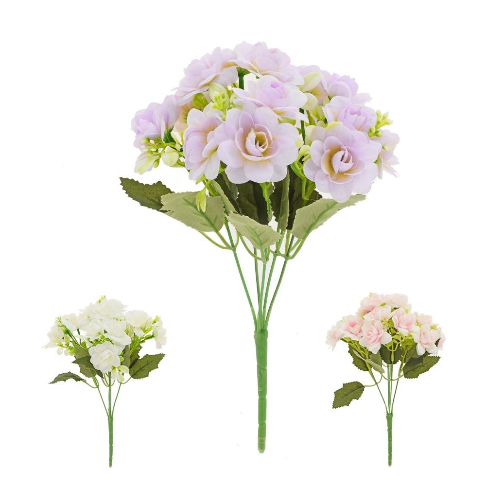 Dekorace Kytica ruža, zeleň, mix/3f 31cm