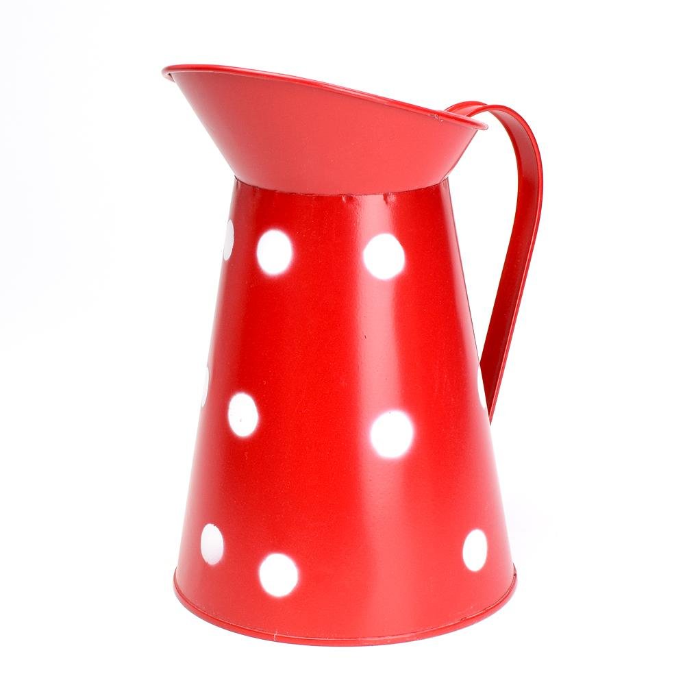 Váza džbán malý kov červená veľké bodky v:22x12,5cm super cena
