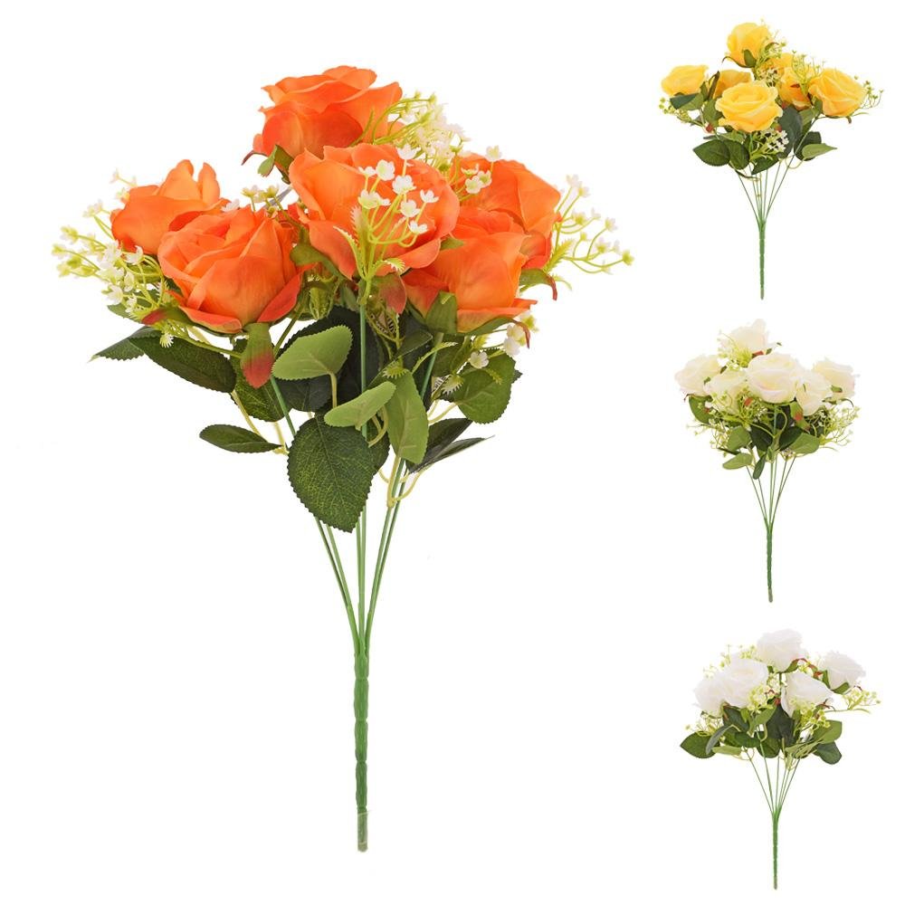 Kytica ruža, drob.kvety, zeleň mix/4f 35cm