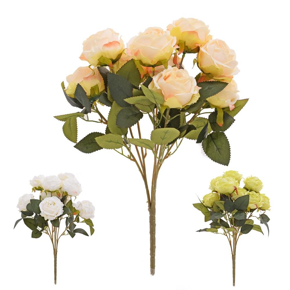 Dekorace Kytica ruža x7 42cm mix/3f