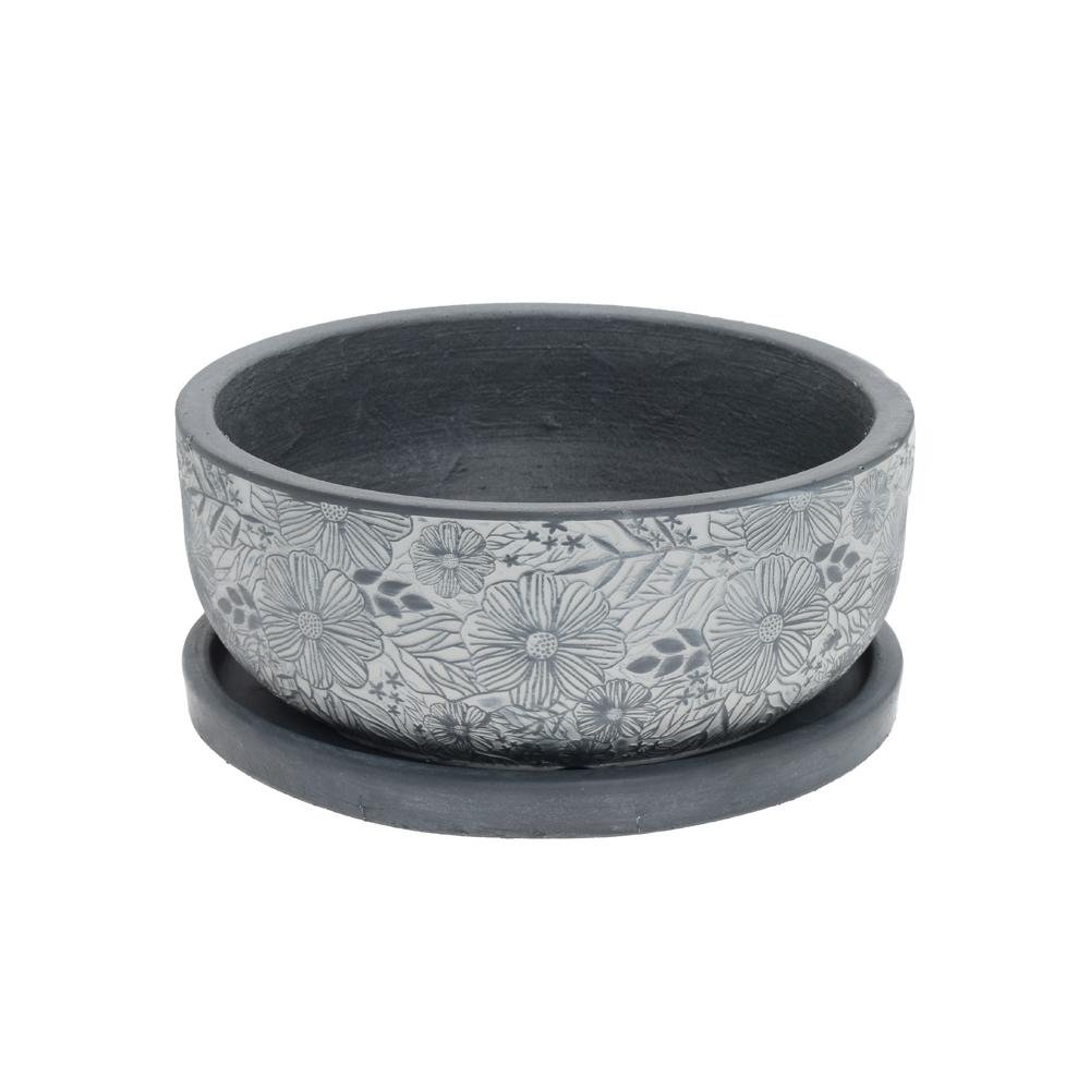 Dekorace J113 kvetináč + miska liva čierna 44x20,5cm xl