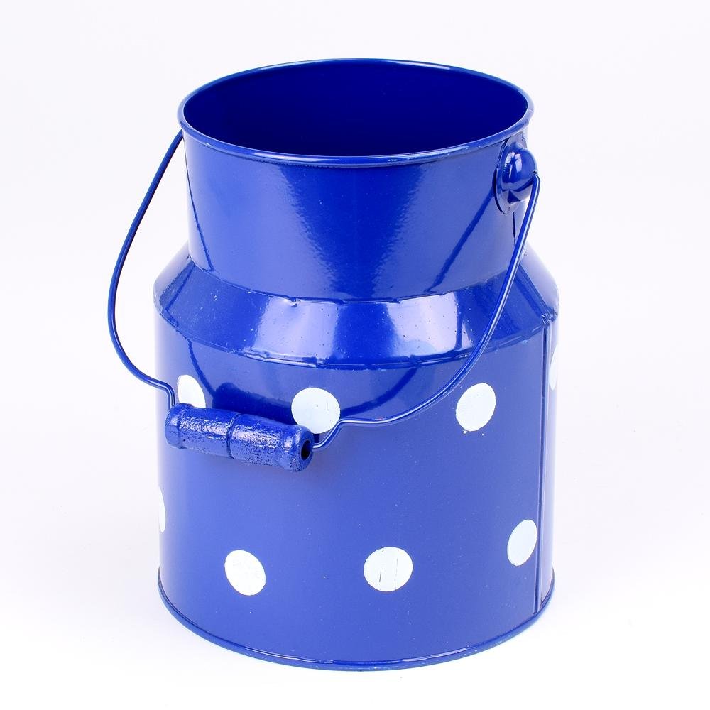 Dekorace Váza konva s rúčkou kov modrá veľké bodky v:18/27,5x12cm super cena