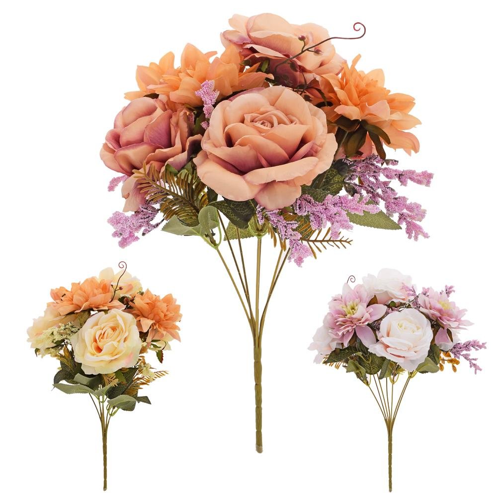 Dekorace Kytica ruža dahlia x7 38cm mix 3f