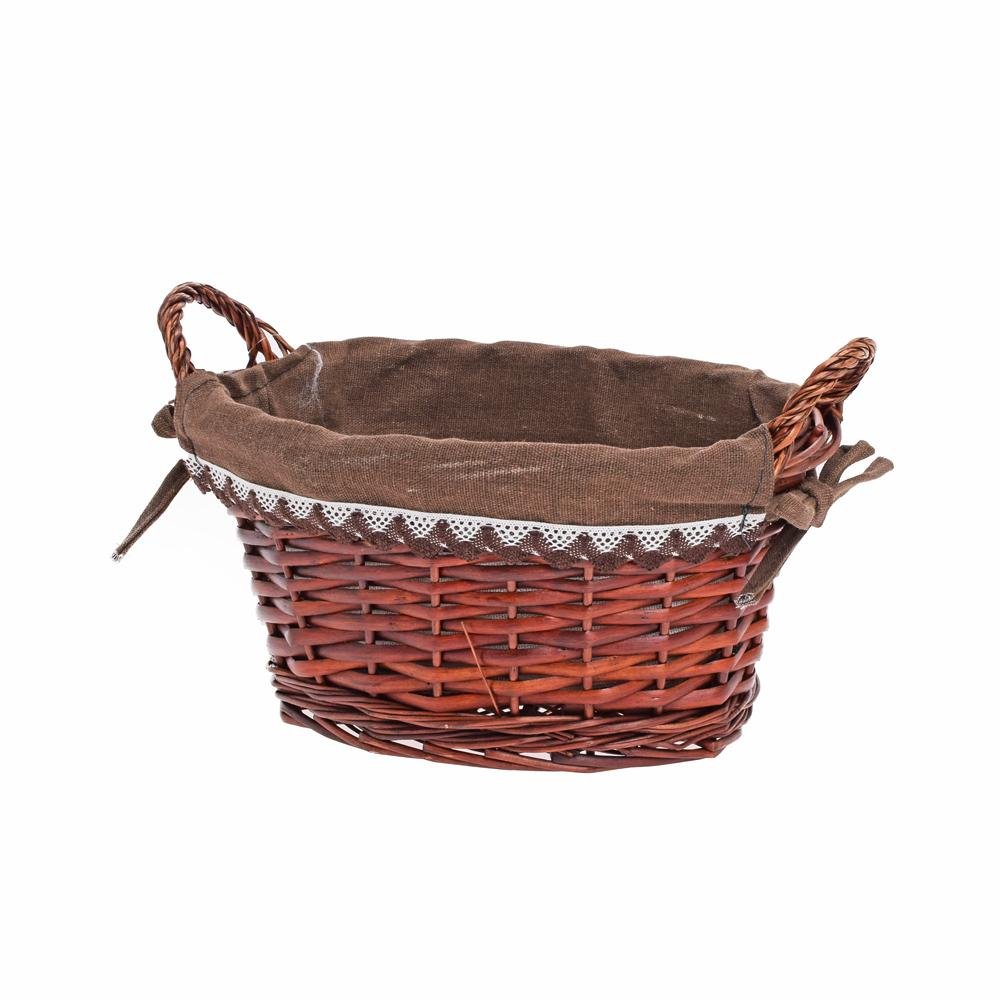 Dekorace Prút. košík ovál tm.hnedý s rúčkou tm.hnedá  látka 29x23x15cm
