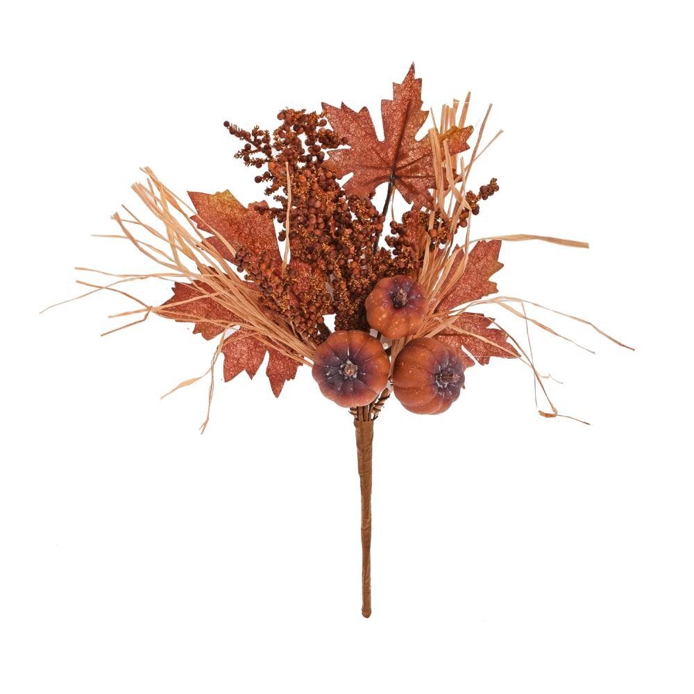 Dekorace Zápich tekvice, javor.list, guličky hnedý 36cm