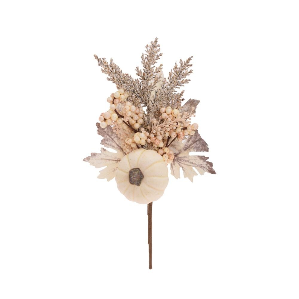Dekorace Zápich tekvica, javor.lístie, guličky krémové 35cm