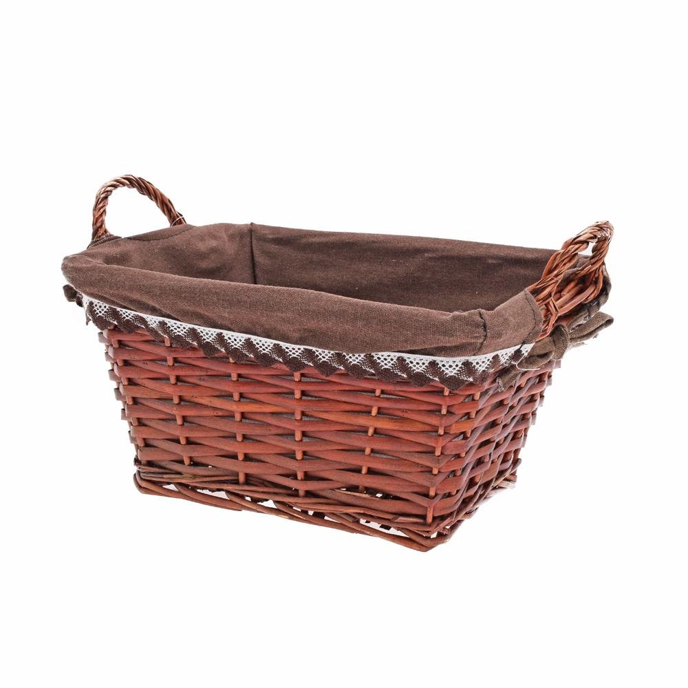 Dekorace Prút. košík obdĺžnik tm.hnedý s rúčkou tm.hnedá látka 28x23x15cm