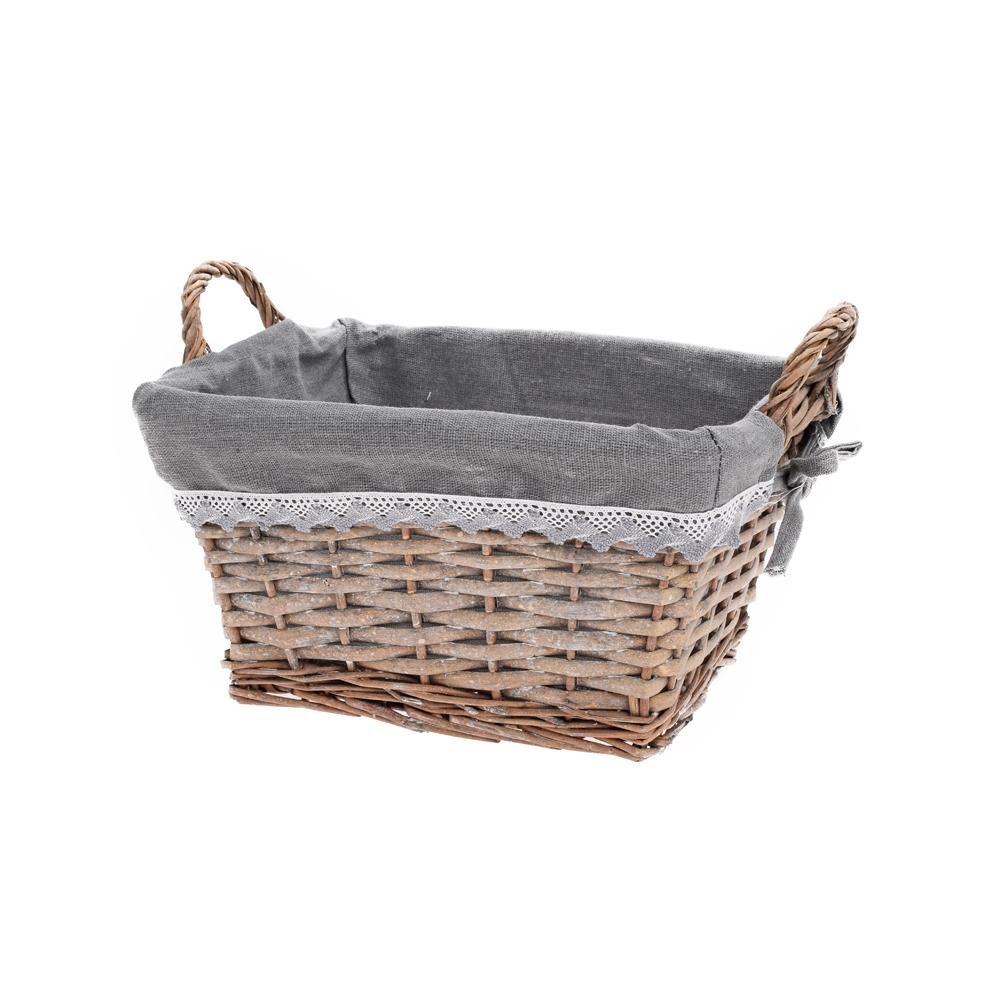 Dekorace Prút. košík obdĺžnik šedá s rúčkou šedá látka 28x23x15cm
