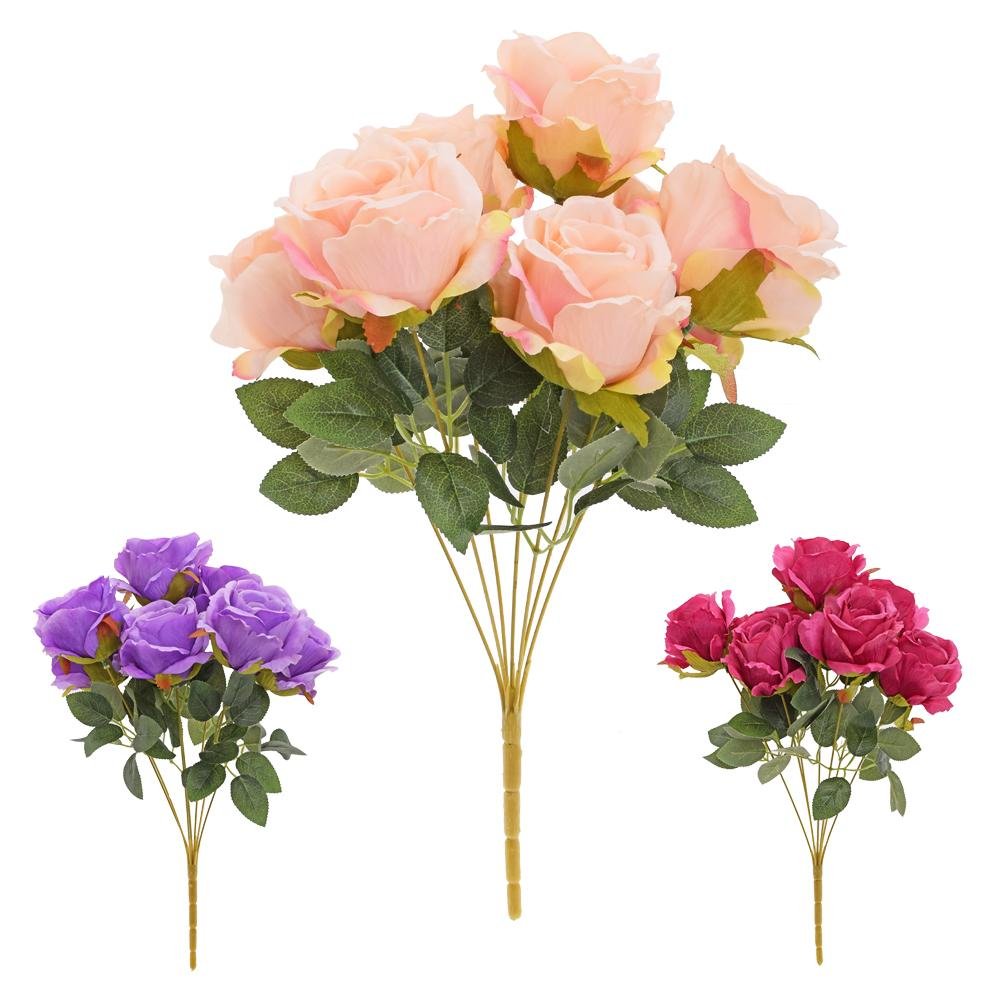 Dekorace Kytica ruža x7 45cm mix/3f