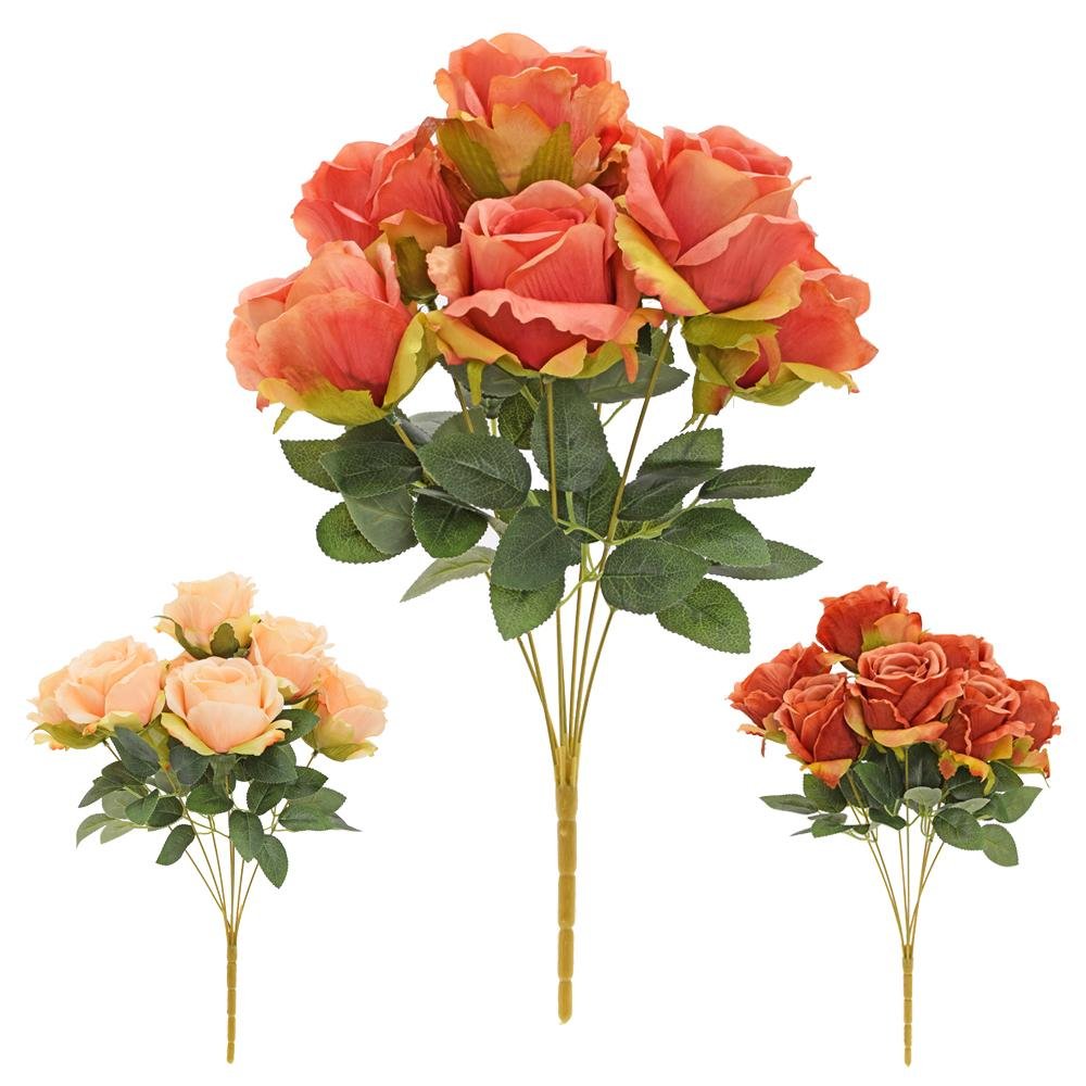 Dekorace Kytica ruža x7 45cm mix/3f jesenné