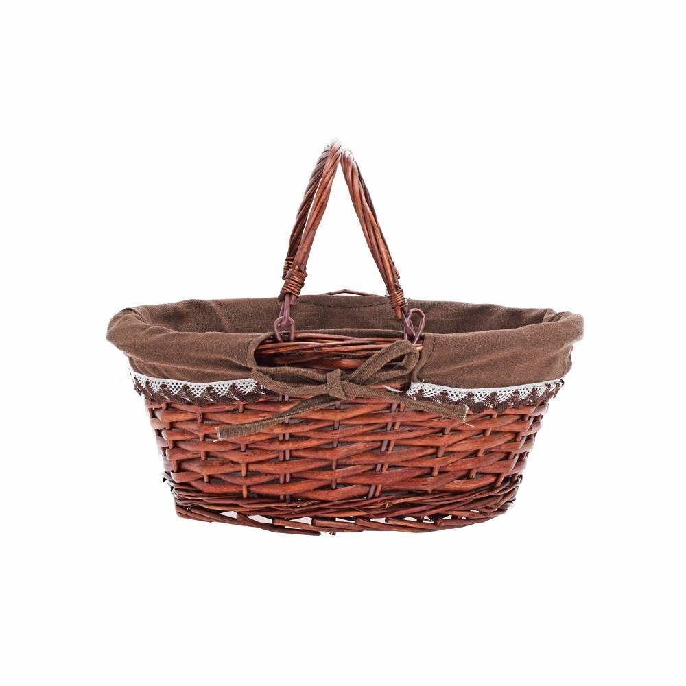 Dekorace Prút. košík ovál tm. hnedá s rúčkou tm.hnedá látka 35x27x15cm