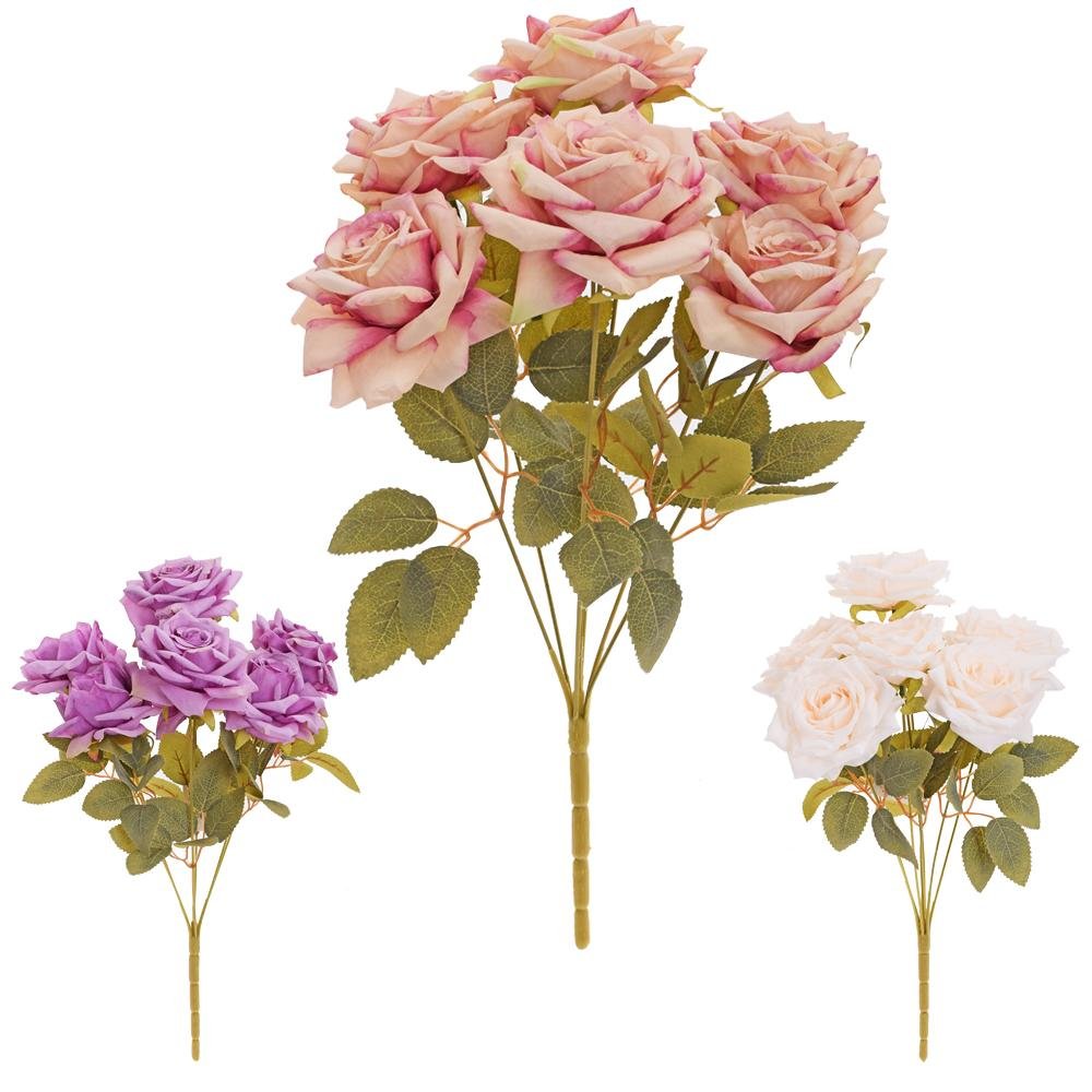 Dekorace Kytica ruža x7 43cm mix 3f