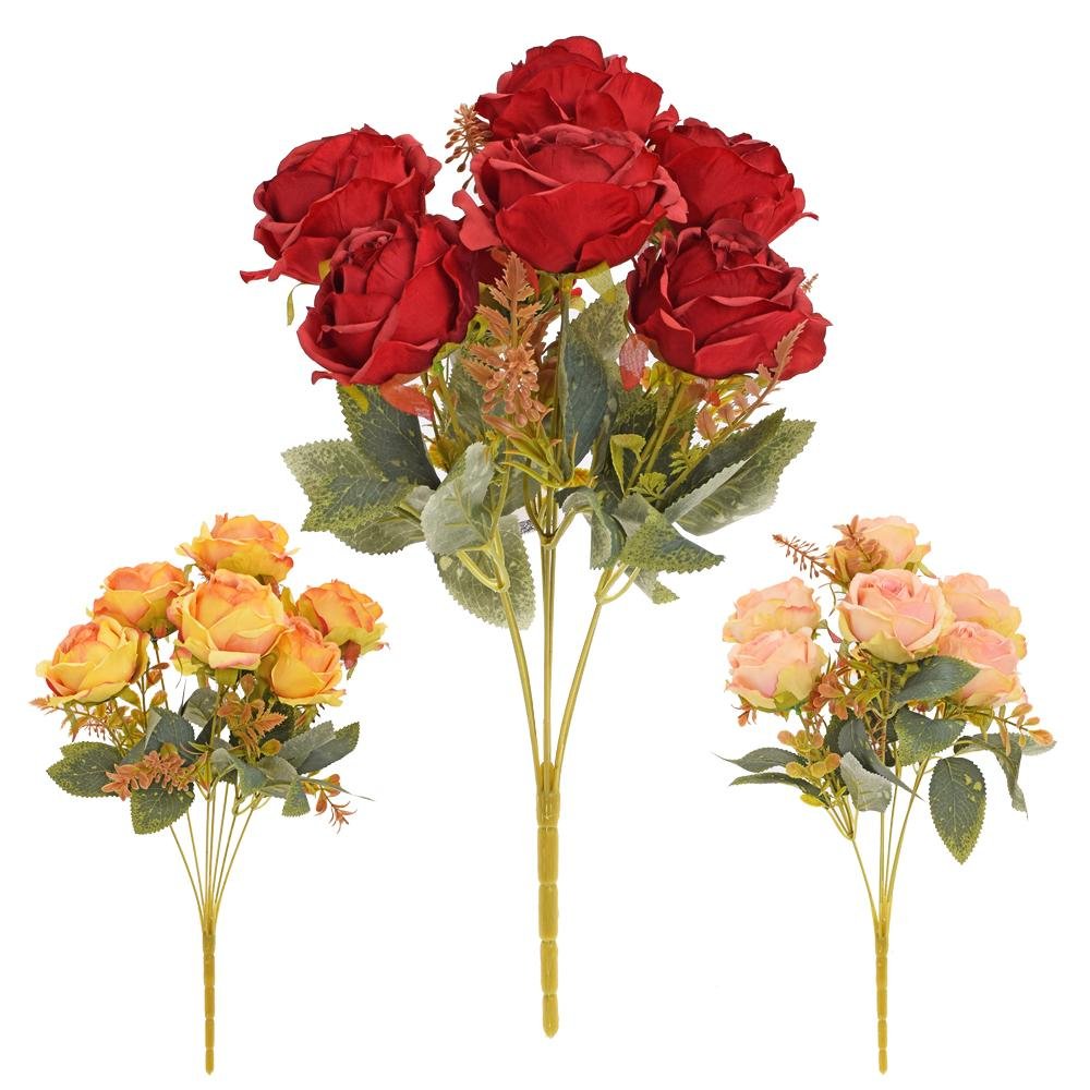 Dekorace Kytica ruža x7 43cm mix/3f