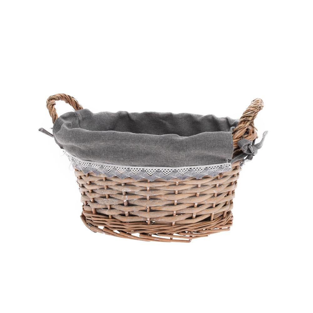 Prút. košík ovál šedý s rúčkou šedá látka 29x23x15cm