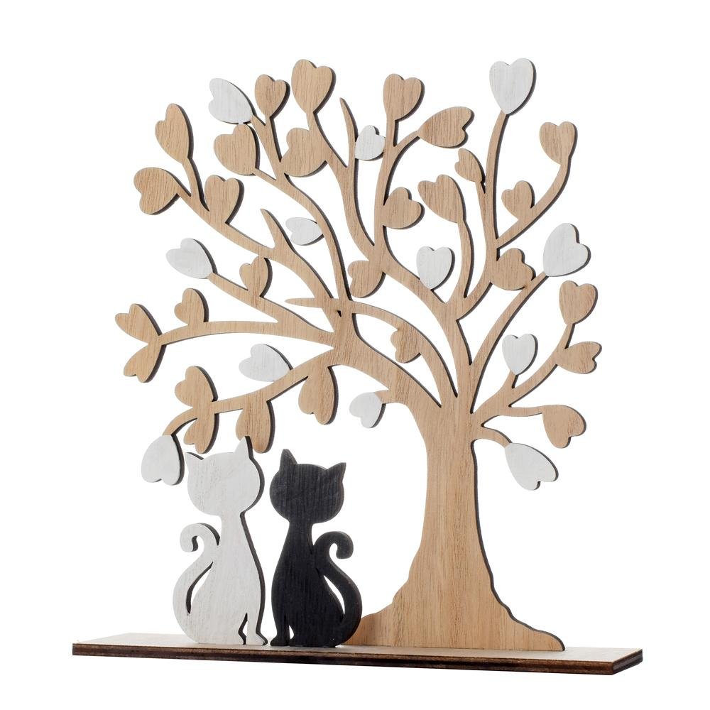 Dekorace Strom so srdiečkami a mačkami bie/čie/nat drevo 21,5*4,5*23cm